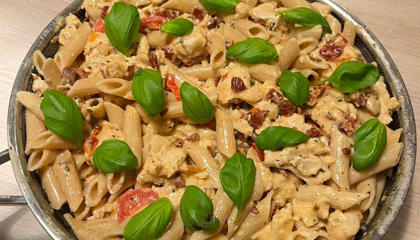 Kremet kyllingpasta med italienske smaker som er rask å lage.